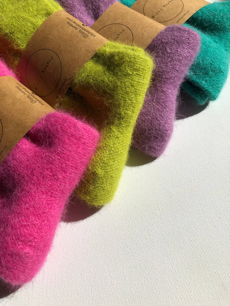 FLUFFY ANGORA SOCKS - CRYSTALS: Purple Amethyst / One size ( M )