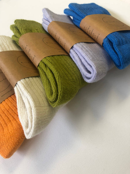 Those cozy wool socks are using the high percentage wool blended thread, make a steady piece with natural wool hand feel, great for the cold weather.