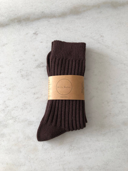 RIBBED COTTON HIGH SOCKS - neutral: Milk chocolate / One size : M/L