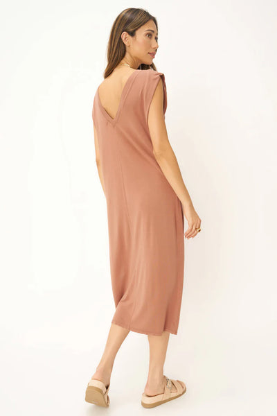 The Yin Yang Tiger Back V Dress features a soft, jersey fabric that drapes in all the right places, creating the perfectly casual weekend dress. The midi length with side slit, v back detail, and muscle tank silhouette add some flattering style, while the relaxed fit keeps it comfy. Pair with sneakers and a leather jacket for a cool weekend vibe.