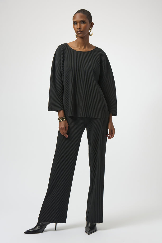 Delicate pleating adds a playful, feminine touch to this casual top. Crafted from lightweight scuba crepe, it features a flattering scoop neckline, three-quarter dolman sleeves, and a relaxed silhouette for effortless elegance and comfort.