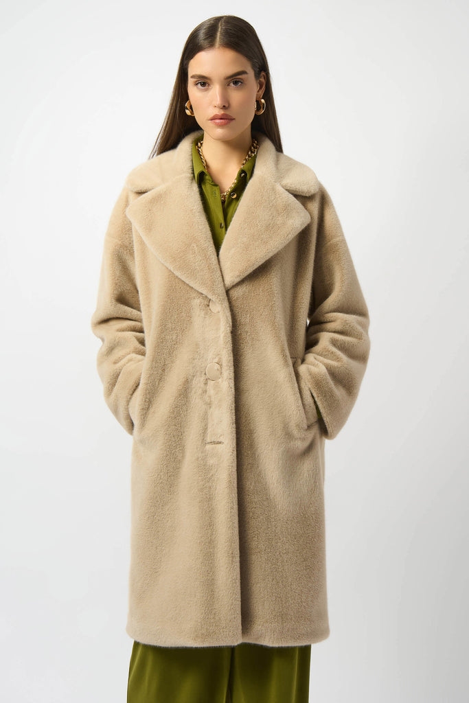 With a classic notched collar, straight silhouette, and front button closure, this plush faux fur coat is the definition of chic style. The perfect piece to take you from a day at the office to a night out on the town.