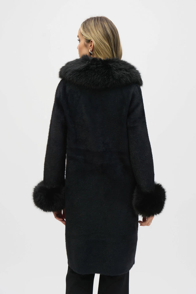 • Notched collar with faux fur trim