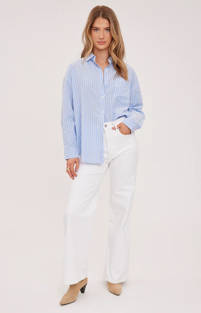 The Orlando Shirt by Gentle Fawn is a striped cotton button down. Style yours back to denim for an everyday look.