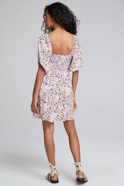 Our 100% rayon Ariana Mini Dress features a smocked upper body and short, flowy sleeves.