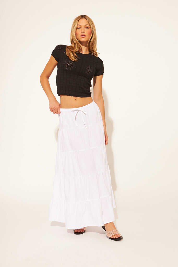 This fitted top is an open-knit. The Charm Top is a must have layering piece. Perfect for under blazers, cardigans, or wearing on it's own. Style this tee all season long with denim, dress pants, or skirts.