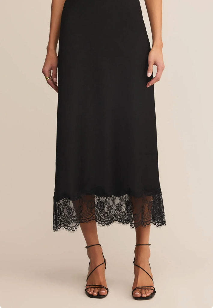 The Z Supply Cinder Lace Midi Skirt offers a flattering high-rise fit and a comfortable elastic waistband for all-day ease. Its lightweight fabric features a heavy soft wash, delivering a smooth, cozy feel against the skin. This regular fit skirt falls to a versatile midi length, making it perfect for both casual and dressier occasions. Elevate your wardrobe with a stylish, effortlessly comfortable piece that moves with you.