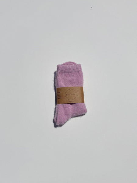 FLUFFY ANGORA SOCKS - CRYSTALS: Pink ruby