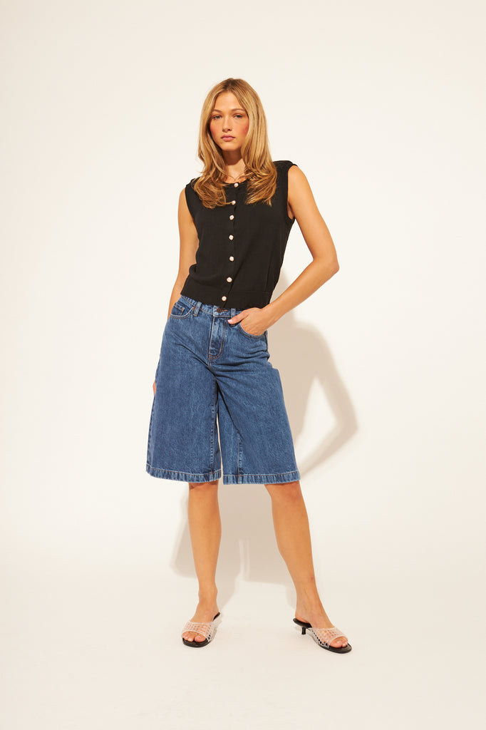 Versatile sleeveless piece that works as a standalone tank or layered vest. Crew neckline and button-front closure give you styling flexibility for any season. Wear it over a tee, under a jacket, or on its own for effortless transitional style.